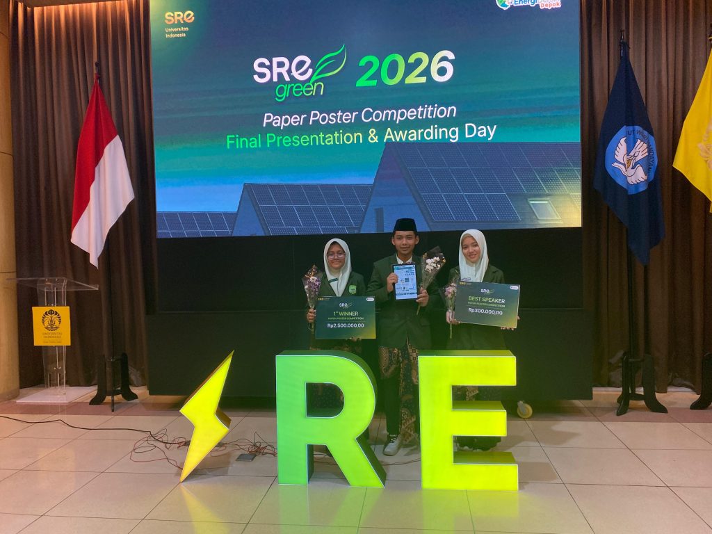 Sedan – Tim Calable dari MA Riyadlotut Thalabah berhasil menorehkan prestasi membanggakan dengan meraih Juara 1 sekaligus penghargaan Best Speaker dalam ajang Paper–Poster Competition SRE UI GREEN 2026 yang diselenggarakan oleh Society of Renewable Energy Universitas Indonesia pada Sabtu (14/3). Prestasi ini menjadi bukti bahwa inovasi yang dikembangkan oleh generasi muda mampu memberikan kontribusi nyata dalam pengembangan teknologi energi berkelanjutan di Indonesia.